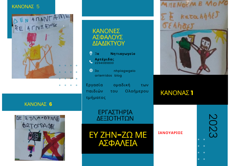 Φυλλάδιο με τους κανόνες διαδικτύου το οποίο φτιάξαμε με τα παιδιά με το ψηφιακό εργαλείο canva.com