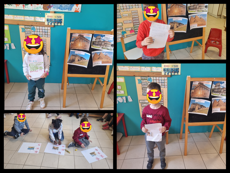 Τα παιδιά παρουσιάζουν στην τάξη όσα έμαθαν για τα μνημεία με τη βοήθεια των γονιών τους στο σπίτι, στην αποστολή που τους δόθηκε από την ψηφιακή ξεναγό.